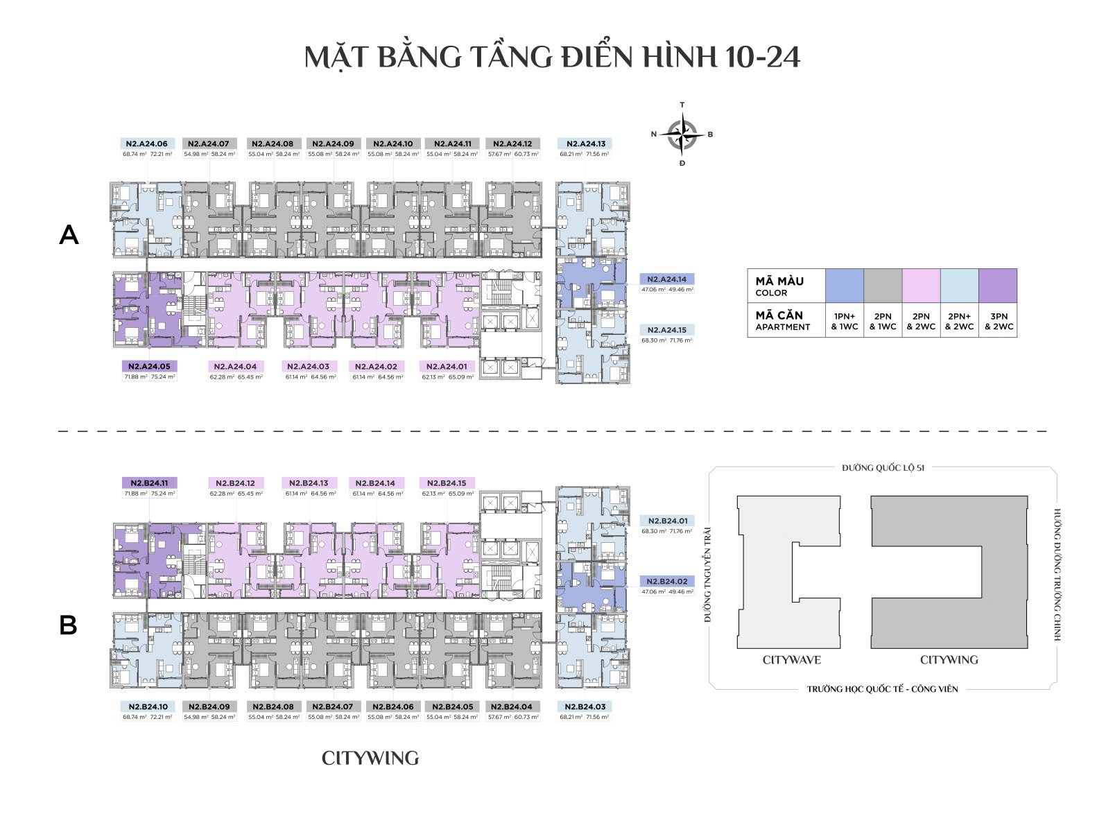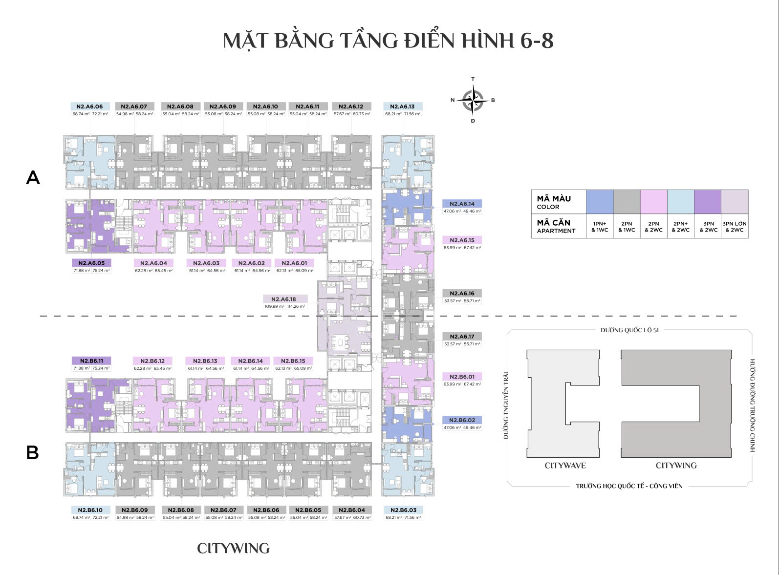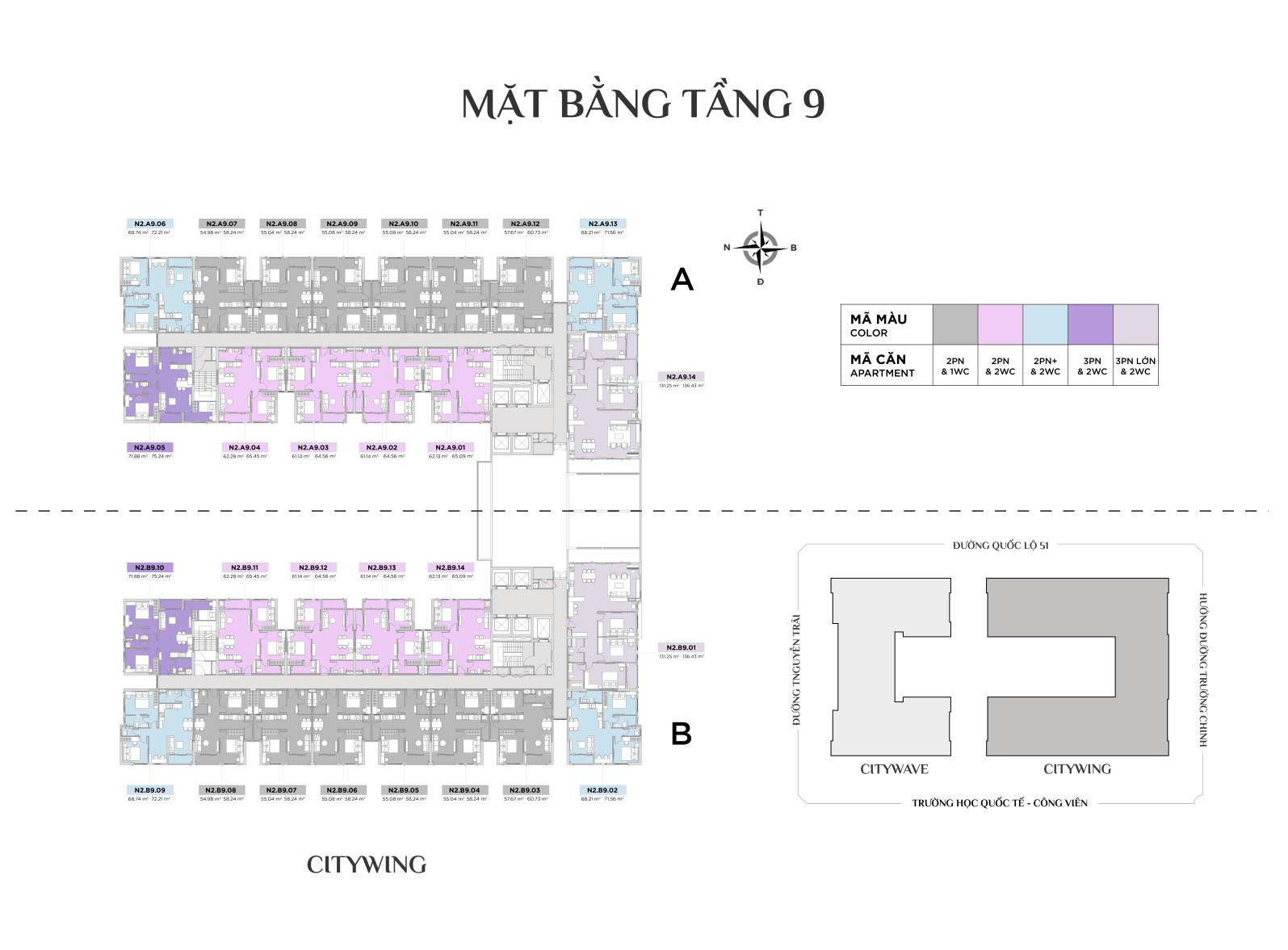 - Căn 2PN 2WC: 62,21 m², phù hợp gia đình nhỏ.