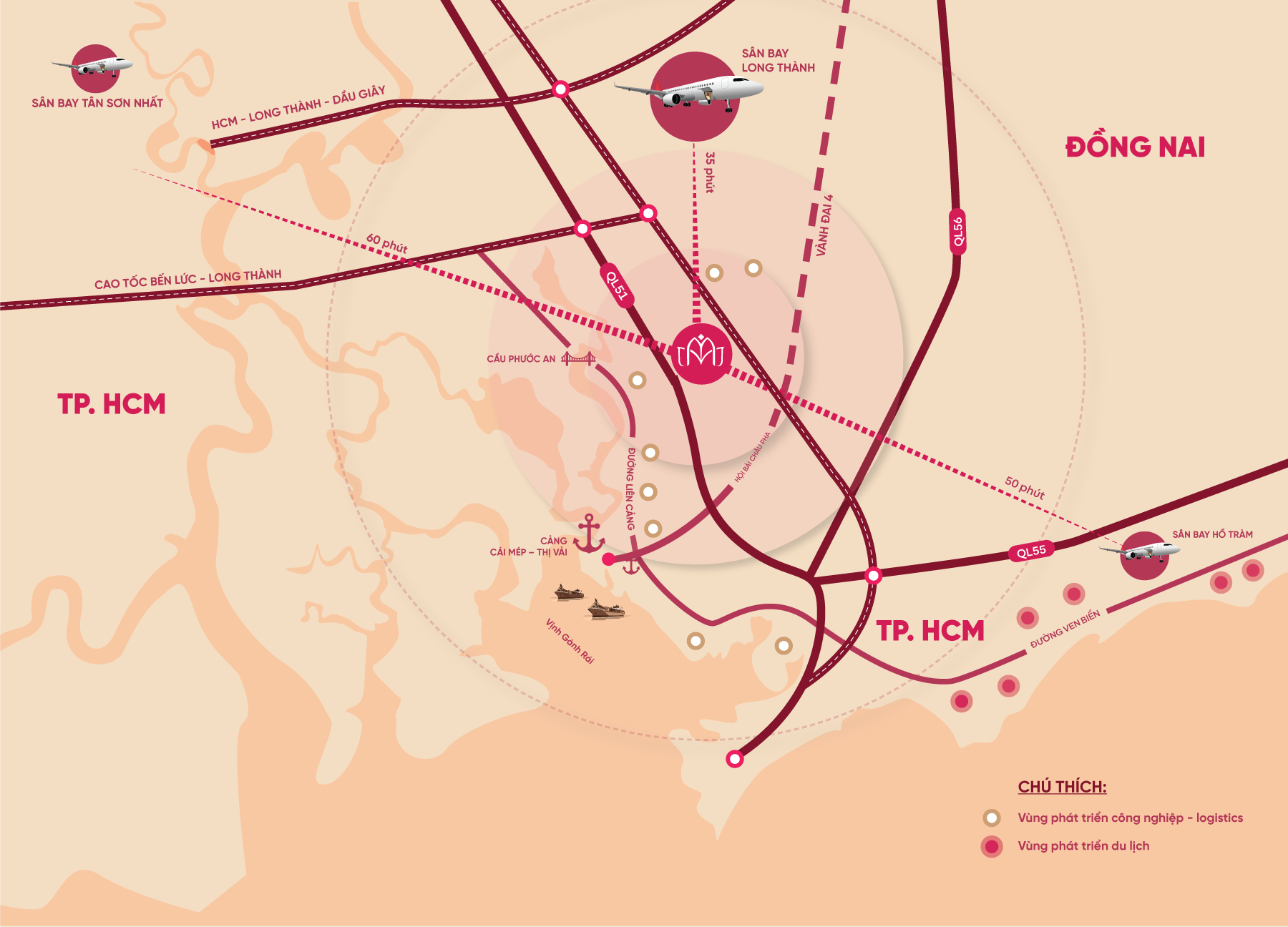 Từ Maison Grand, cư dân dễ dàng kết nối với các tuyến giao thông trọng điểm: cao tốc TP. HCM – Long Thành – Dầu Giây chỉ 45-60 phút đến Sài Gòn, cao tốc Biên Hòa – Vũng Tàu và Bến Lức – Long Thành sắp hoàn thành, cùng sân bay quốc tế Long Thành cách 30 phút. Các khu công nghiệp lớn trong bán kính 5-20 phút, kết hợp với sự phát triển đô thị hóa cao tốc, khiến Maison Grand trở thành lựa chọn lý tưởng cho chuyên gia quốc tế và gia đình trẻ.